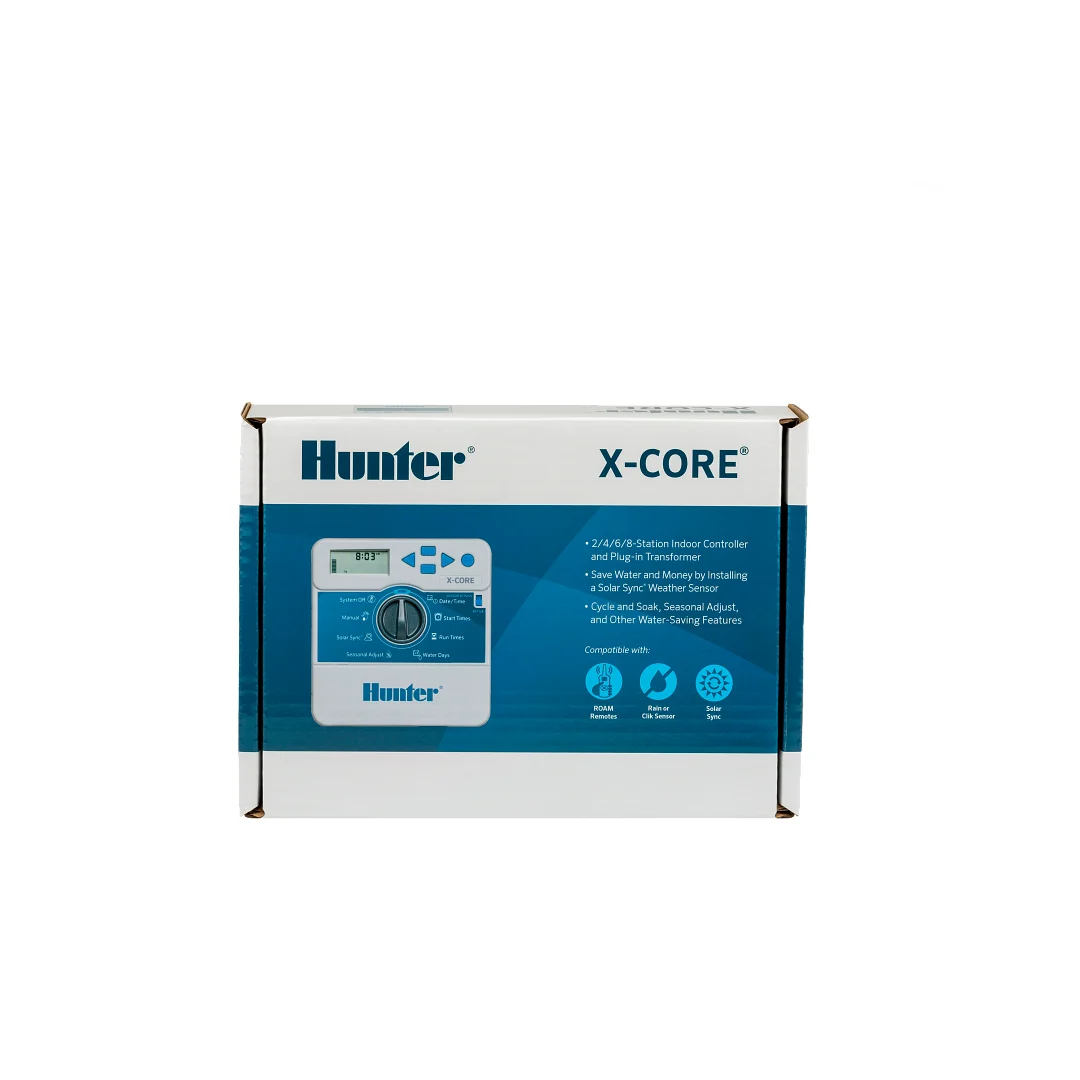 The Hunter X-Core Controller, 8-station, indoor, 230 VAC with lead and European plug is a versatile irrigation controller that streamlines scheduling and management for residential and commercial systems. Offering multiple station capacities and flexible programming options, it includes features like cycle-and-soak, seasonal adjustment and memory backup for customized water schedules. When combined with Hunter’s WAND module (where applicable), it supports Wi‑Fi connectivity for remote access through Hydrawise software, enabling predictive watering based on local weather data. A backlit display and intuitive interface make setup and diagnostics straightforward, while protections like short‑circuit detection safeguard the system. It features 8-station, indoor, 230 VAC with lead and European plug.
